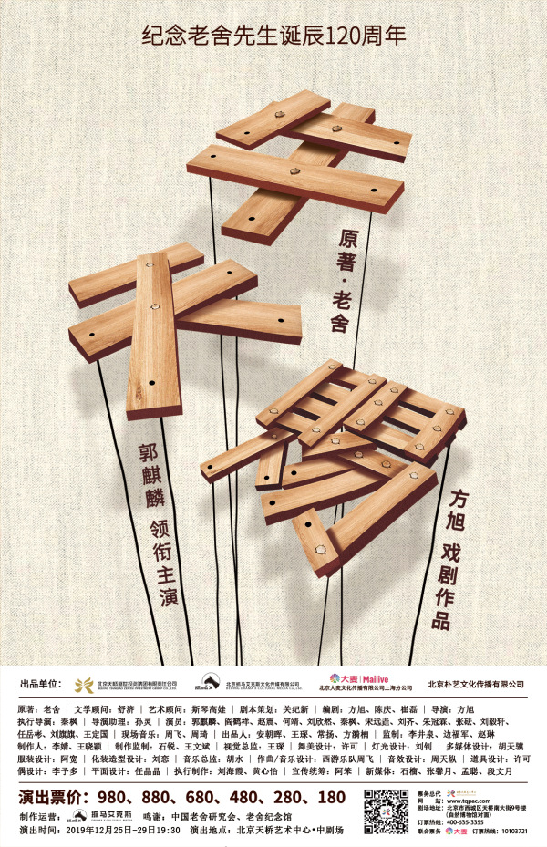 为纪念老舍先生诞辰120周年,改编自老舍先生长篇小说《牛天赐传》的话剧《牛天赐》将于12月25日至29日,在北京天桥艺术中心演出。该剧由方旭、陈庆、崔磊编剧,方旭导演,同时还邀请了青年演员郭麒麟首登话剧舞台,并与搭档阎鹤祥一同领衔主演,为观众呈现出一部“北平少年蹒跚史”。