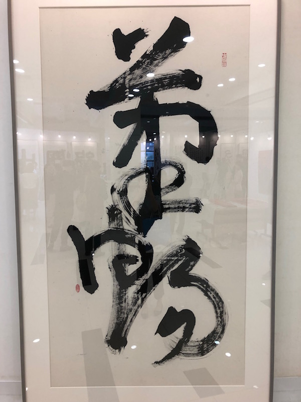 展览现场乌克兰留学生安好的书法作品