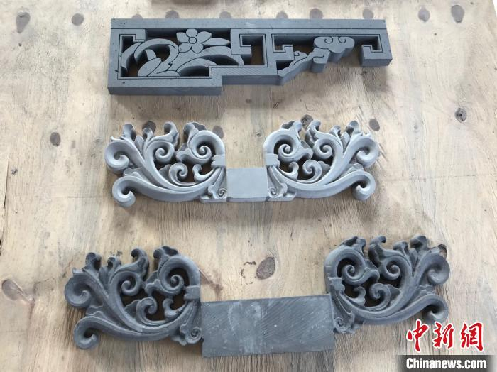 但最为考验功夫的,还是最后的雕刻步骤。阴刻、浮雕、平雕……这道被称为“硬花活”的工艺尤为注意指间力道。俞秋红埋着头,常常一雕就是一整天。几年时间下来,她终于将身缠百余种规格和纹样的瓦当、滴水、翘角等古建筑构件的技法烂熟于指间,用古法技艺中的“讲究”,造就了千锤百炼后的“匠心”。