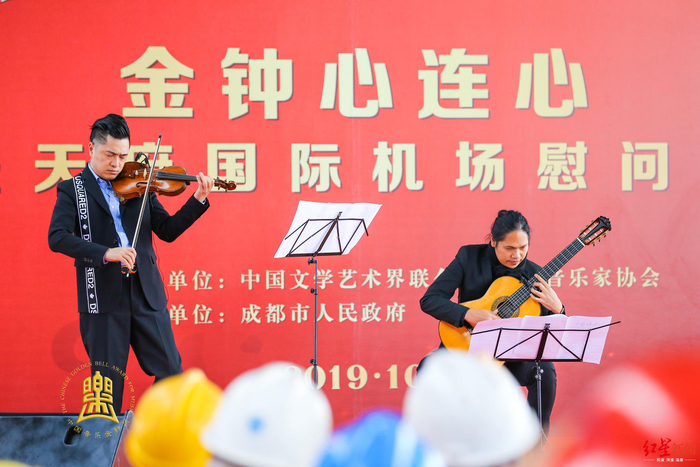 10月26日下午,第十二届中国音乐金钟奖“‘金钟心连心’走进东安湖体育公园慰问演出”与“走进天府国际机场慰问演出”分别在成都东安湖体育公园和天府国际机场举行。新鲜出炉的声乐(美声、民族)组获奖选手走进基层,用美妙的歌声与音乐为奋斗在一线的建设工人奉上了一场音乐艺术大餐。