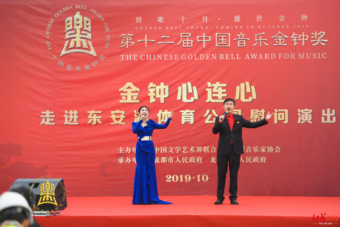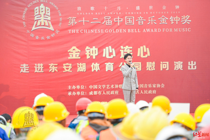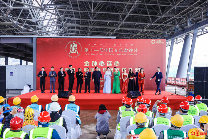 第十二届中国音乐金钟奖“‘金钟心连心’走进东安湖体育公园慰问演出”,在东安湖大运会建设现场传唱经典作品,歌唱新成都、礼赞新中国。值此成都建设世界赛事名城和国际音乐之都之际,“金钟”来到成都,走进基层,走近一线的建设工人,以音乐为桥梁,搭建成都走向世界的舞台;以音乐为载体,将体育的活力、开放的品格深度融入城市发展的血脉,共同助力新时代机遇下成都的美好未来。