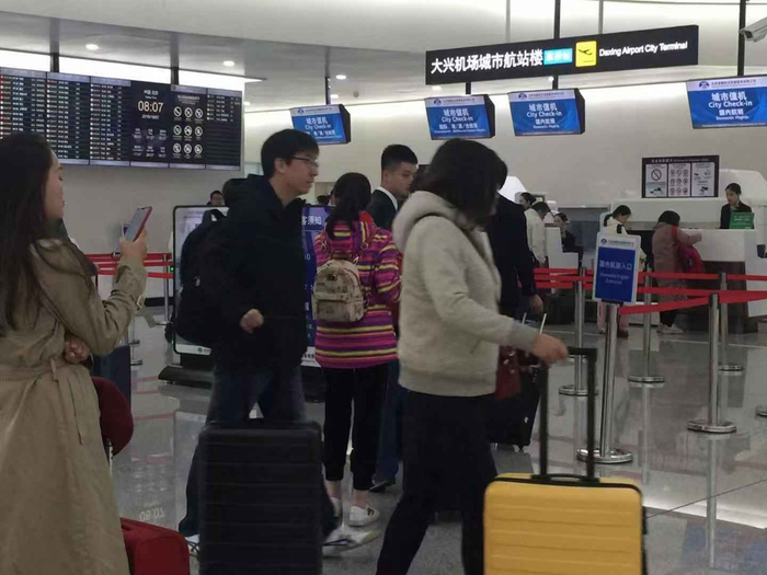非常顺利地,首批从北京大兴国际机场出境的旅客全部完成了通关手续。早7时50分,CA757航班飞往泰国曼谷。