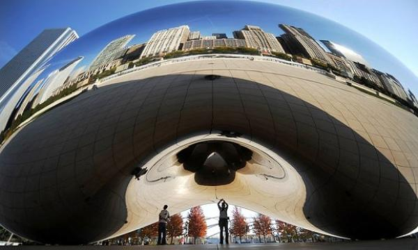 ·卡普尔为芝加哥设计的城市雕塑“云门”  图片来源:Jewel Samad/AFP/Getty Images