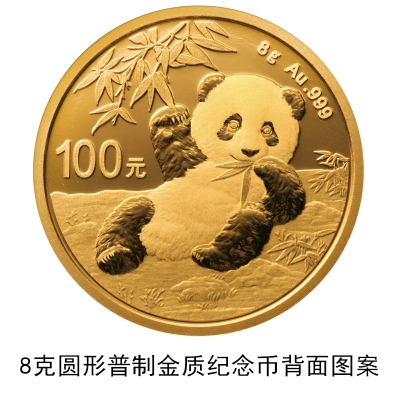 (三)8克圆形金质纪念币为普制币,含纯金8克,直径22毫米,面额100元,成色99.9%,最大发行量600000枚。