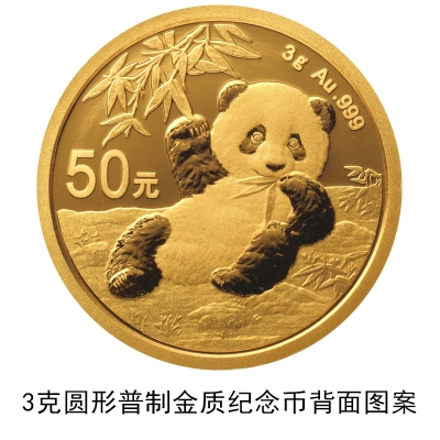 (二)3克圆形金质纪念币为普制币,含纯金3克,直径18毫米,面额50元,成色99.9%,最大发行量800000枚。