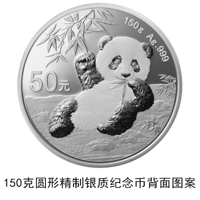 (十一)150克圆形银质纪念币为精制币,含纯银150克,直径70毫米,面额50元,成色99.9%,最大发行量60000枚。