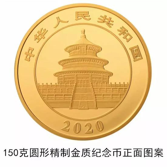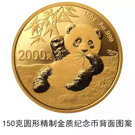 (八)150克圆形金质纪念币为精制币,含纯金150克,直径60毫米,面额2000元,成色99.9%,最大发行量10000枚。