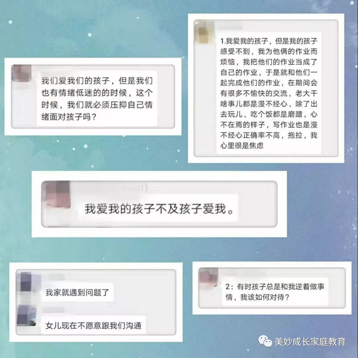 在我们半月谈美妙成长教育的直播群中,很多家长也分享了自己的困惑: