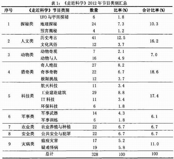 有人曾做过研究,以2012年《走进科学》为例,328期节目中,猎奇与探秘性质的内容占了近三分之一,如果把历史探秘和怪病探秘也算上的,相关比例会更高。