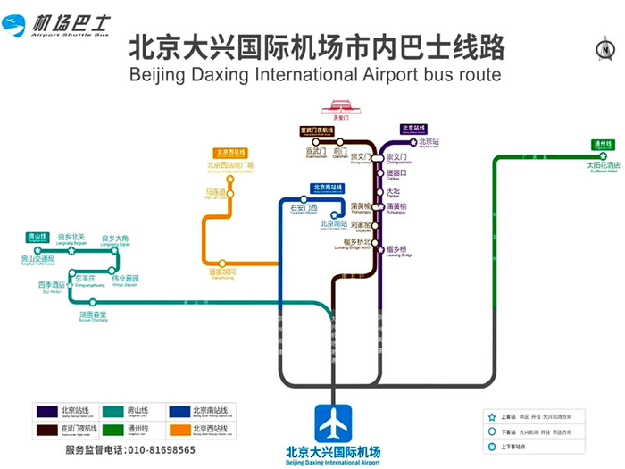 大兴机场省际巴士线路图及时间表。大兴机场图