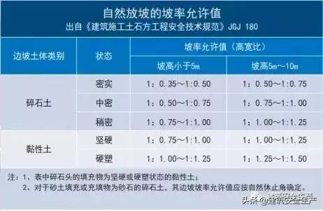 (9)自然放坡的基坑,其坡率应符合设计要求和现行行业标准《建筑施工土石方工程安全技术规范》JGJ 180的规定。