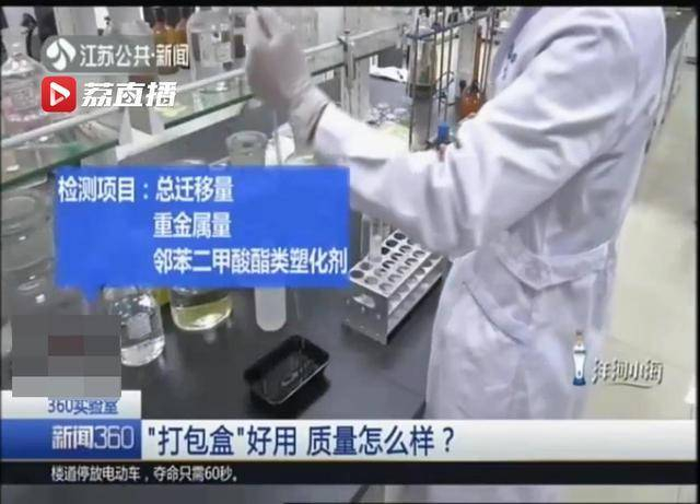 360实验室记者联系了南京质检院,检测人员针对餐盒能否加热、加热后是否产生毒素,以及餐盒本身是否有重金属超标等情况,做了总迁移量、重金属量和领苯二甲酸酯类塑化剂等三项检测。