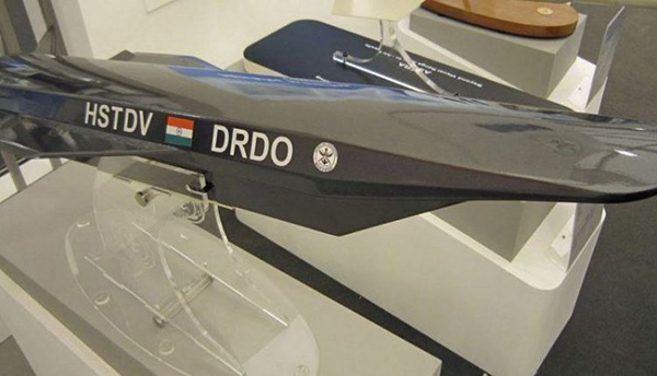 印度军工部门对高超声速技术的兴趣也由来已久,2004年印度就完成了HSTDV的外形和气动设计,2008年DRDO主任萨拉斯瓦特表示,印度正在积极推动HSTDV项目的研究,试图通过验证高超声速气动和动力技术,为未来远程高超声速导弹以及廉价航天发射铺平道路。据传以色列和英国为HSTDV项目提供了风洞测试帮助,在以色列风洞中进行了六分之一尺寸的模型试验,俄罗斯也为高超声速技术尤其是推进系统提供了关键的帮助。2010年印度互联网上就泄露了HSTDV的模型照片,和今年实际试飞的飞行器基本一致。2012年柏林航展上DRDO就公开展示了HSTDV的模型,这种高超声速试验飞行器拥有一对短翼面和一对垂直尾翼,最明显的标志是3.7米长的矩形进气道,它的机身底部、机翼和尾部表皮使用耐热的钛合金,而背风面使用重量轻的铝合金,超燃冲压发动机进气道使用铌合金和镍铬合金提高耐热性能。