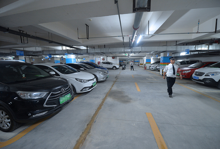 地下车位是否属于全体业主所有,确实存在很大的争议。图为2018年5月30日,成都某小区的地下停车场。 视觉中国 图