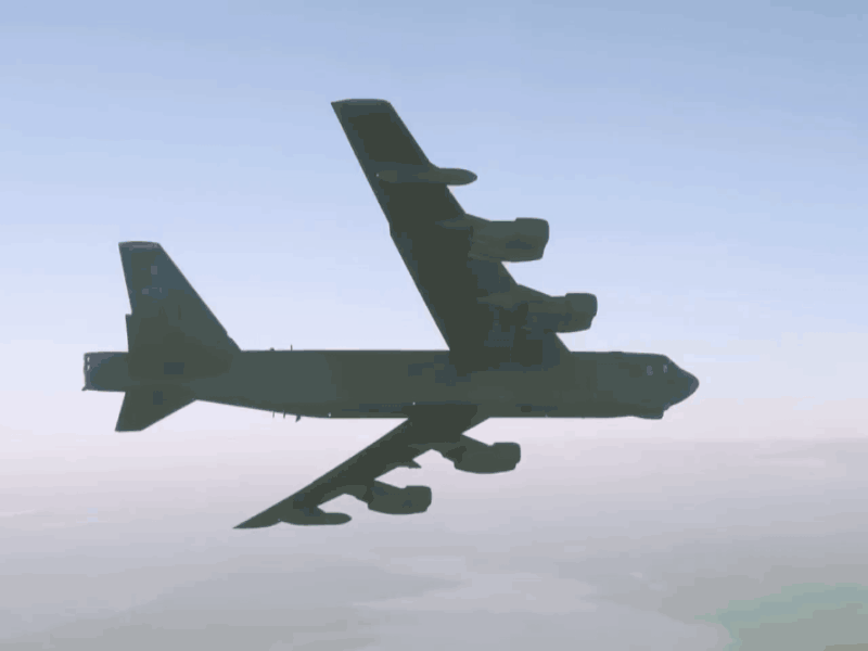B-52H发射AGM-86B巡航导弹进行核打击动态图。