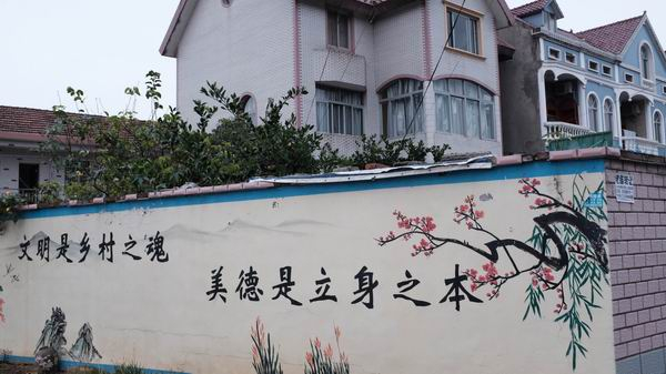 水村的民居和围墙上的宣传标语。本文图片均为澎湃新闻记者朱凡所摄。