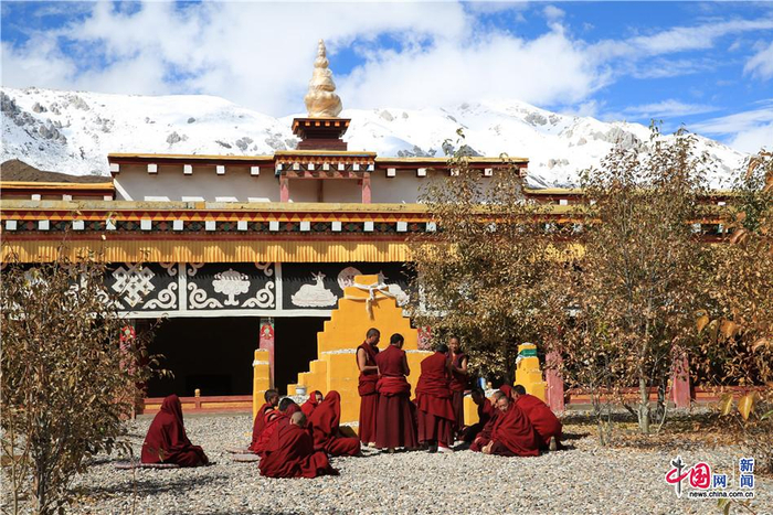 位于左贡县雪山下的田妥寺,僧人在此辨经。 中国网记者 栗卫斌 摄