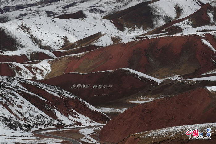 边坝县山区公路旁印有“发展边坝 教育先行”宣传标语。中国网记者 栗卫斌 摄
