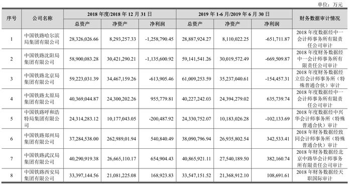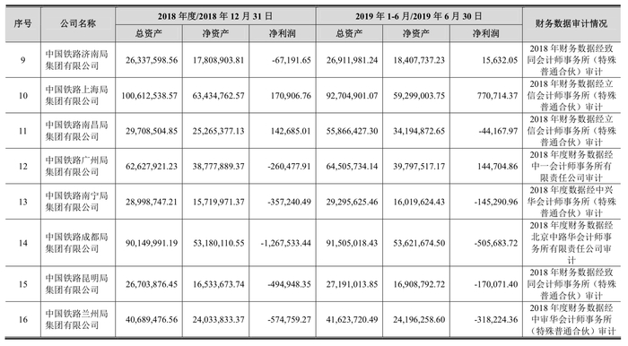 在所有11家亏损铁路局集团中,亏损程度最轻的为中国铁路南昌局集团有限公司,2019年上半年净亏损4.42亿元,总资产达到3419.49亿元。