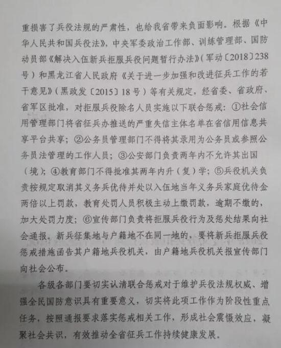 黑龙江对2018年度拒服兵役的26人实施联合惩戒