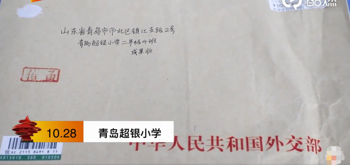 近日,一封从中华人民共和国外交部寄来的信函,让青岛超银小学的师生和成果同学兴奋不已。