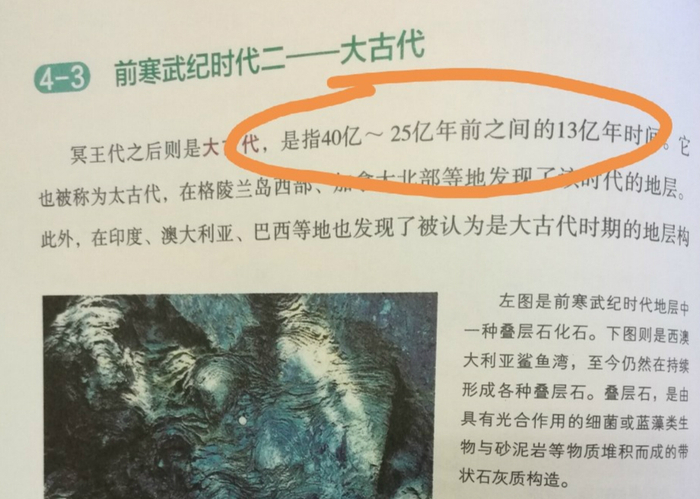《地球·生命——138亿年的进化》一书中,更有“大古代,指40亿——25亿年前之间13亿年时间”的表述。