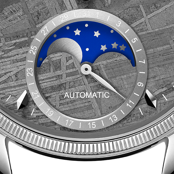 观揽群星,聚目明月,是中国文化天文成就的伊始,在长达数千年的时光里,月相与中国传统阴历相对应,从初一到月末,先后经历“新月、上弦月、满月、下弦月”,对祭祀、观潮、农耕的发展意义深远,见证人类文明的兴盛。与此同时,歌咏月亮阴晴圆缺,抒发胸怀心绪的文化传统,一直根植于中华血脉,也是敦煌天文的诗意象征。为此,飞亚达历经数年,特意打造了一枚月相功能自动机械机芯,以“揽月”为名,让艺术时计不止于一时遐思,呈现出“星月轮转”的灵动魅力。