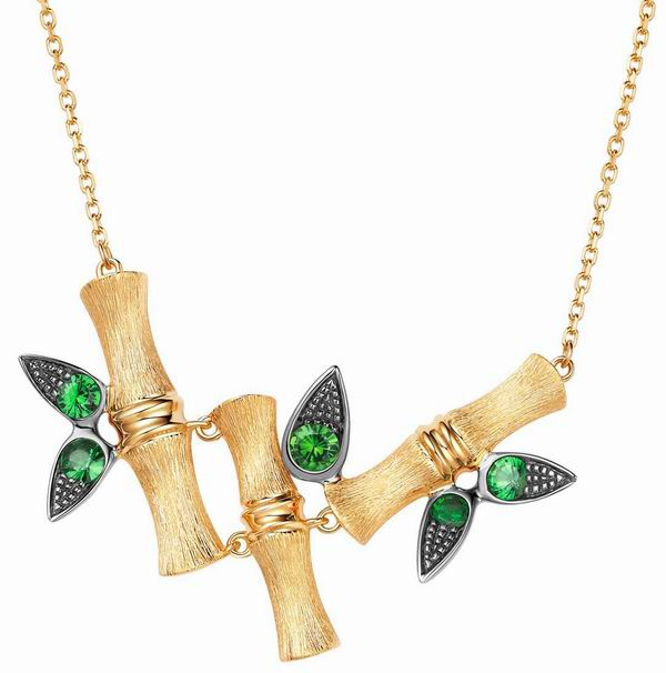 一段竹节便是一份坚韧的见证,一份恒久的象征,又暗含着“节节向上”的美好寓意。项链佩于胸前,翠绿色石榴石点缀的竹叶,带来厚积薄发的生机意蕴,同时又颇具玩味,彰显出尘皎洁之美更有“胸有成竹”之意;耳环挂于耳畔,竹节与竹叶随身体摇曳碰撞,宛若一阵清风袭来撩动阵阵竹海,飘逸风雅增添生动细节。