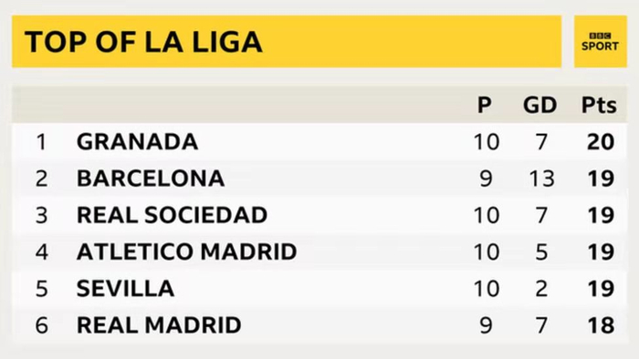 格拉纳达一度占据着西甲榜首的位置。
