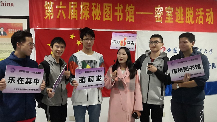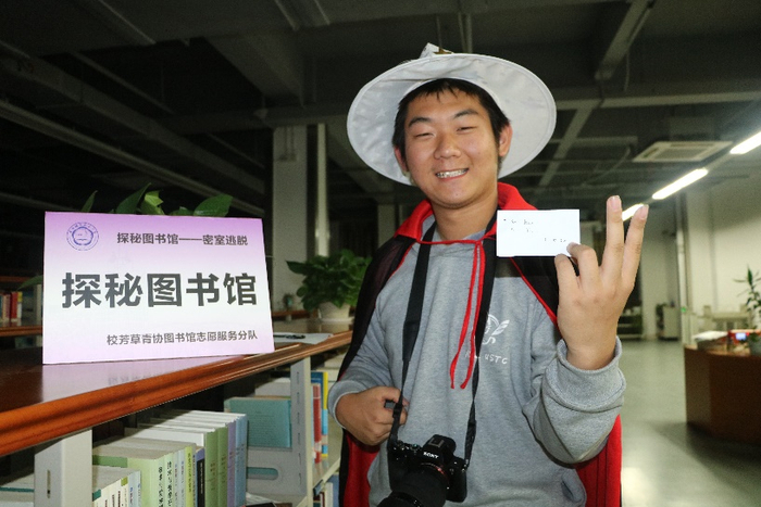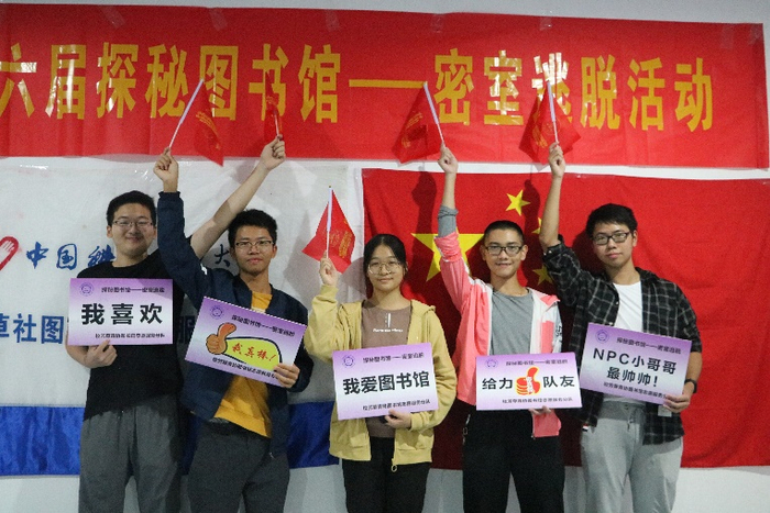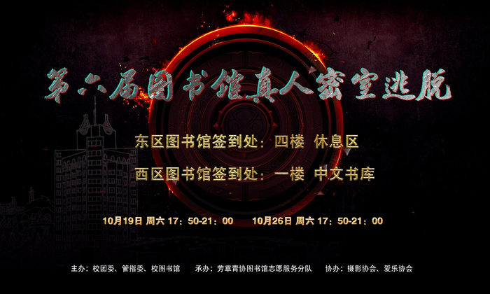 为加强同学们对图书馆藏书分布和索书号编码规律的了解,丰富同学们的课余生活,展现图书馆丰富多彩的一面,在校团委、管指委、图书馆的大力支持下,由图书馆学生主管丁菁梅老师组织,图书馆志愿服务分队李佳桐、叶子恺、骆成章、程凯歌共同策划,联合校学生摄影协会和爱乐乐团于10月19日和26日晚分别在东区图书馆的三、四层阅览书库和西区馆中文书库举办第六届探秘图书馆真人密室逃脱活动。