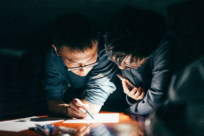 庄严安静的图书馆在这两天晚上异常热闹。有同学在激烈的算题,有同学在哈哈大笑,还有“NPC”为增加氛围搞怪吓人……爱乐协会提供神秘莫测的背景音乐,参赛队伍在漆黑背景中可以感受到肾上腺素激升的刺激,摄影协会的成员在各个书库记录精彩瞬间……