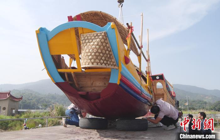 原标题:“非遗”传承人建传统木帆船下水试航 将参展中国杯帆船赛