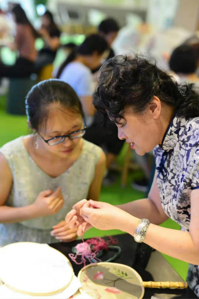 松江区也在积极推动顾绣进校园活动,区文旅局先后与上海工程技术大学、上海视觉艺术学院签约,开展了一系列的顾绣传承与应用课程,2019年教育部中华优秀传统文化传承基地(顾绣)在上海师范大学正式挂牌成立,顾绣的传承与创新应用有了更广阔天地。