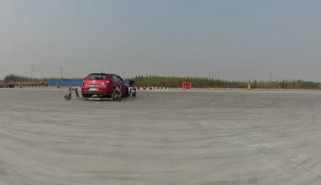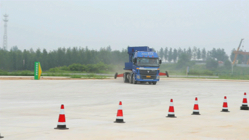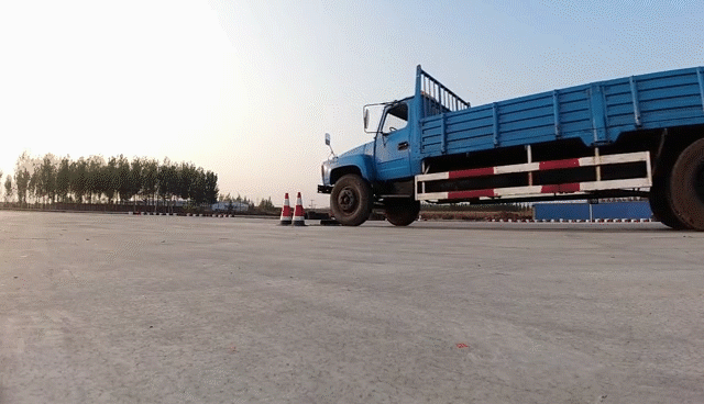 看完大货车爆胎,紧接着又上演了另一场戏码。一辆载重的大货车,在行驶中,急打方向,车子瞬间快要侧翻了过来,但是,车子是经过改装的,在车体中间加装了横梁,横梁两侧各安装一轮胎,当车体倾斜,快要侧翻时,横梁上的轮胎着地,支撑车子着行进直至恢复正常。如果不是特殊改装过,这辆车势必将侧翻。如此,大货车就这样摇摇晃晃,像醉酒一般行驶了几个来回。