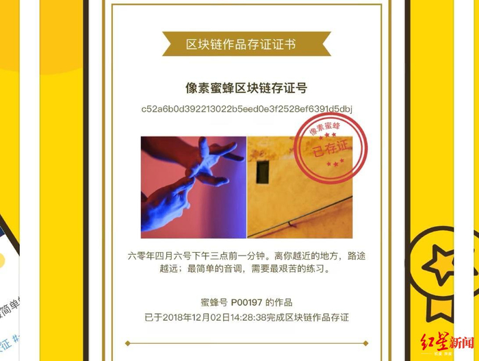 半年前,视觉中国因为一张黑洞照片引发了“版权门”事件,如何避免同样的事情发生?今年2月份,一款名为像素蜜蜂的APP悄然上架,期望通过区块链技术,明确版权归属,解决版权内容可能引发的争端。