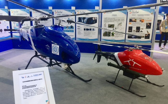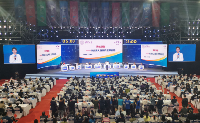 第五届中国大学生“互联网+”创新创业大赛总决赛上展示的交叉双旋翼复合推力尾桨无人直升机