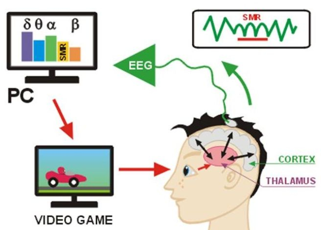 以前这技术经常被用来治疗多动症和自闭症儿童,用增加专注力的方法来提高他们的认知能力。