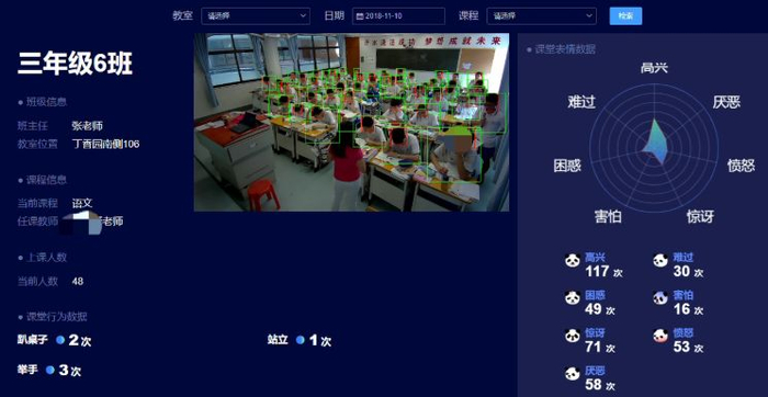 学校引进了一批最流行的教学辅助设备,通过摄像头识别每个学生状况。
