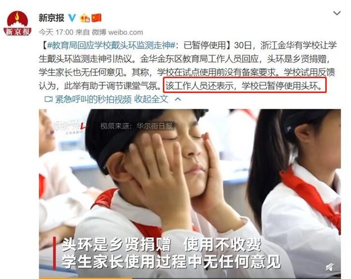 今天,浙江金华的学校已经暂停使用头环,不知道其他学校是否也会跟进。