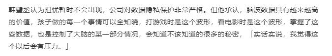 这种产品未来的走向也很令人担心,因为随着脑机接口技术的发展,通过脑波可以判断的东西会更多了,连 BrainCo 的 CEO 也承认,“ 未来脑波数据越来越有高的价值,打游戏是这个波形,看电影是那个波形,掌握了这些数据,会知道不该知道的很多秘密 ”
