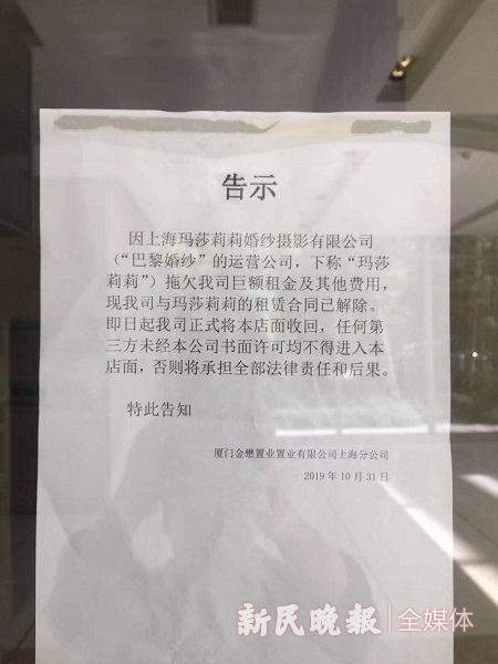 在沪经营20多年的巴黎婚纱关门跑路?好多新人悲催了