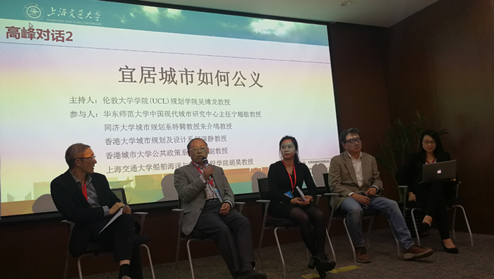 下午的论坛首先进行“高峰对话II:宜居城市如何公义”,由著名华人城市研究学者、英国社科院院士、伦敦大学学院(UCL)规划学院巴特莱特讲席教授吴缚龙教授主持,华东师范大学中国现代城市研究中心主任宁越敏教授、同济大学城市规划系特聘教授朱介鸣教授(英国社科院院士)、香港大学城市规划及设计系何深静教授(Urban Studies中国主编)、香港城市大学公共政策系张晓玲副教授作为讨论嘉宾。