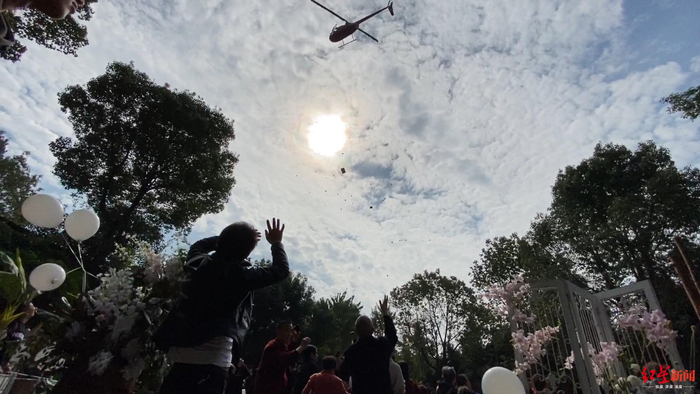 直升飞机花式助兴 成都一婚礼现场下起“红包雨”
