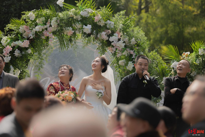 “太惊喜了,完全没想到会有这样的安排。”当天婚礼的新娘王女士表示,婚礼前一周都很忙,“他早上七点过就走了,有时候回来都凌晨两三点了”。“世界那么大,我们一起去走走。”新娘侧头依偎在新郎肩上笑着说。