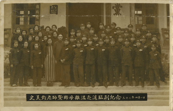1943年4月,史美钧离温赴沪,与瓯海中学学生合影留念(黄瑞庚藏)