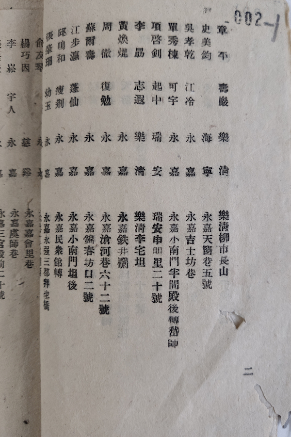 《倦旅掠影录》一文最后几段对温州当时市容、经济、风土等描写,信息颇多,很有价值,此不赘述。那么史美钧在温短短几月,是在哪个学校任教。当时温州有温州中学、永嘉中学、瓯海中学、瓯北中学、浙东战时初中、建华中学等学校,只有逐一排查。我到温州图书馆、市档案馆数次查阅相关学校档案及校刊、通讯录,终于在市档案馆发现《民国三十二年四月瓯海中学同学录》上有史美钧的名字,籍贯一栏填海宁,住址或通讯处一栏登记为永嘉天窗巷五号,证实了我读史美钧著作时对他出生地的猜测。史美钧任教的瓯海中学即今温州第四中学。1925年“五卅惨案”发生后,各地掀起反帝运动,谷寅侯带头倡议脱离教会学校艺文学堂,收回教权,筹资建校成立瓯海公学,后改名瓯海中学。该校位于蛟翔巷,面朝九山湖,瓯江岸边、松台山脚都在不远处,风光旖旎。校门口有座八角亭,临湖而建,原是学校图书馆,别有风致。史美钧租住的天窗巷离学校也仅五六百米路程。我骑车上班几乎每天都经过校门口和天窗巷头,倍感亲切。