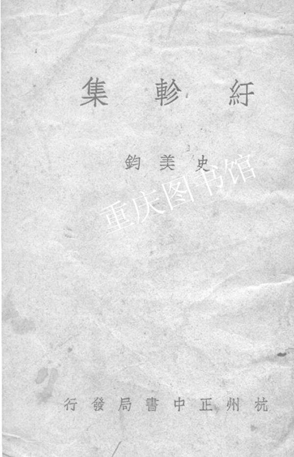 《纡轸集》,查到重庆图书馆、南京图书馆有藏,费四百元从重庆图书馆复制了一本。也是杭州正中书局民国三十一年四月出版发行。内分“篱下掇拾”“夕阳漫步”“兽爪纵横”“粲英缤纷”四辑,收录《断弦》《榴火》《行程》《山中》等四十三篇文章,其《后记》云:“这一集散文整理删削仍不免零乱而稚弱,岂仅战时随笔特显其拙劣!不过尚有大部原稿迭经散秩,遗存上海的想又尽化劫灰,那么残缺地留下虫蚀的痕迹,殊属赧愧而极怕回顾!何故如此草率地忽促印行?著者原冀为丧失同情的人生缀饰一些冰雪,而未来呢?更仿佛侭有无数酸辛与愁苦等待着。”此书还有七幅木刻版画插图,乃洪焕椿所绘。洪是温州瑞安人,孙诒让的外孙,在温州中学就读时参加木刻研究社,与王里仁、樊祖鼎合作出版《前哨木刻集》。此书出版时,应是在洪焕椿中学毕业后进入浙江省立图书馆工作不久。