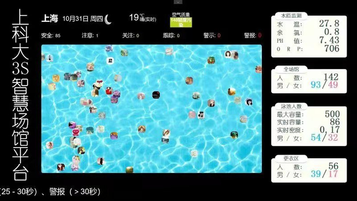 “为确保万无一失,我们将系统预警时间控制在30秒以内,并设置了安全、注意、关注、跟踪、警示、警报6个预警等级,泳客在水下滞留的时间越长,预警等级就会逐步提高。”
