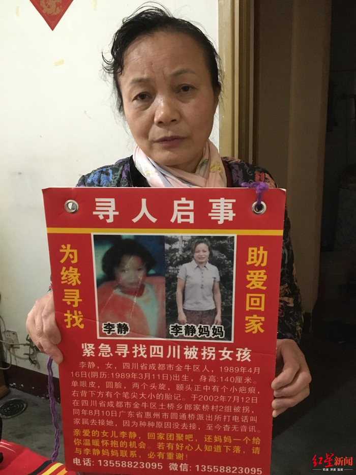 “这17年,我过得行尸走肉,除了找女儿没有别的盼头。”李秀华说,2002年8月12日和2013年,广东惠州警方和成都土桥派出所,曾经通知家属有李静的消息,由于各种原因,她一次又一次地错过女儿的消息,致使寻女之路变得越来越艰难。“我只希望有生之年,可以见到她一面。”