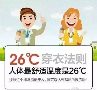 公式是酱紫的:最佳温度26度-今日气温=你要穿的衣服度数